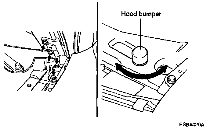 2. Turn the hood bumpers either clockwise or counterclockwise to adjust the height of the hood.