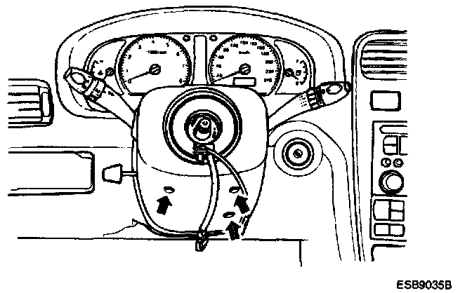 1. Disconnect negative (-) battery terminal and remove the airbag module or horn pad.