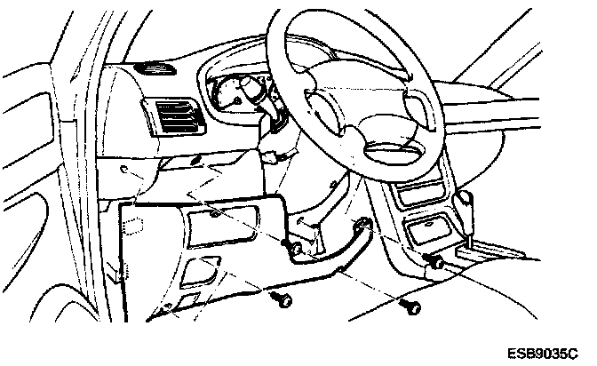 3. Remove lower crash pad panel and disconnect the hood release cable and data link connector and switch plate