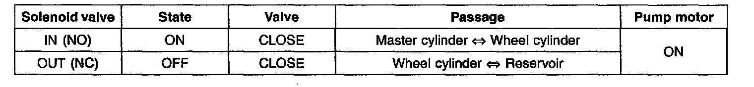 When the brake fluid pressure is maximally decreased in wheel cylinder, HECU sends a signal to solenoid valve to keep the fluid pressure, voltage is supplied to inlet valve but it is not supplied to outlet valve. At this time inlet and outlet valves are closed and brake fluid is kept in wheel cylinder.