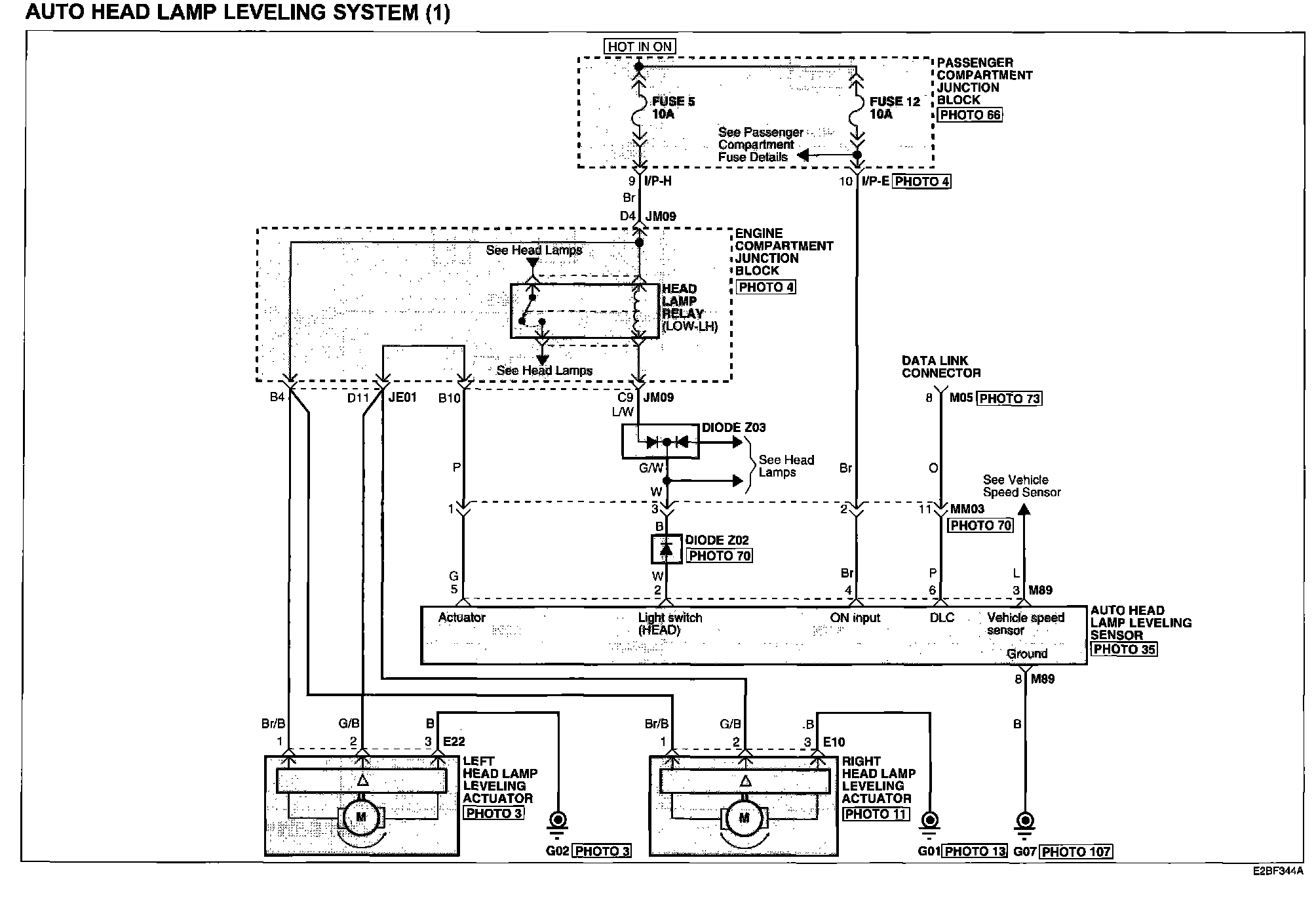 Locations: Location photographs (references to PHOTOS) referred to within these diagrams can be found at the vehicle level under Locations by Photo Number. Component Locations