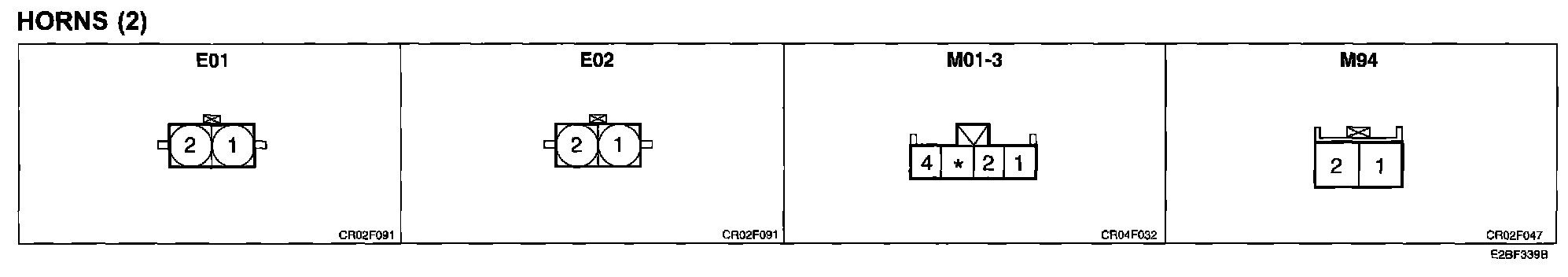 Horns (2) Connector Pin Outs: