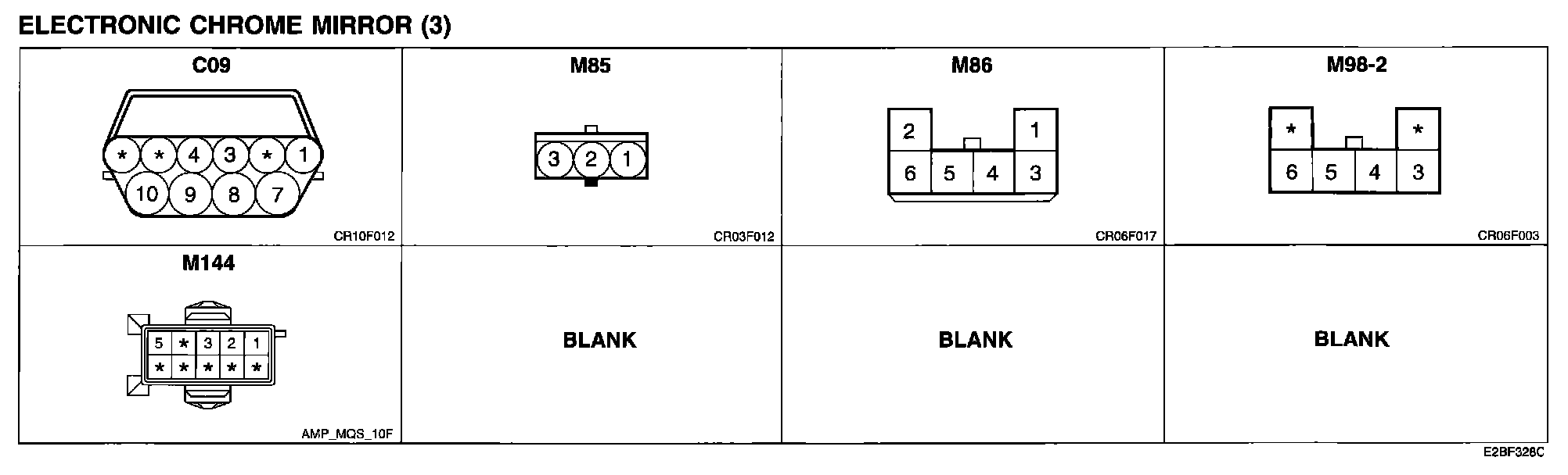 Electronic Chrome Mirror (3) Connector Pin Outs: