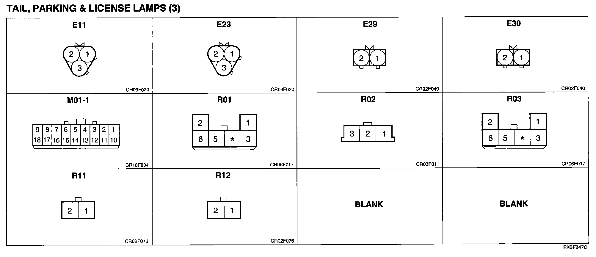 Tail, Parking And License Lamps (3) Connector Pin Outs: