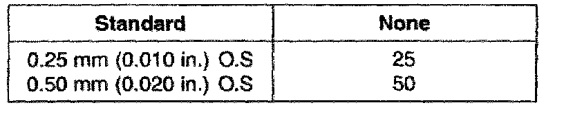 Standard: 0.10 - 0.25 mm (0.0039 - 0.0098 inch)