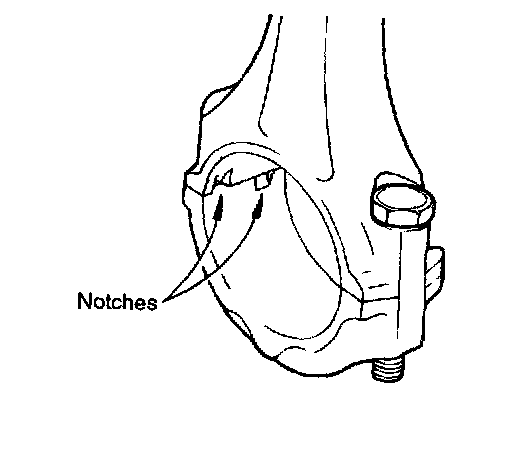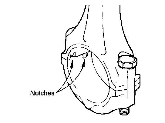 14. When a new connecting rod is installed, make sure that the notches for holding the bearing in place are on the same side.