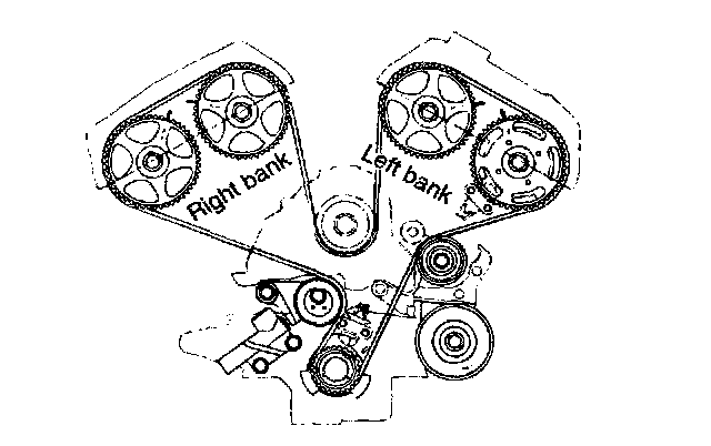 6. Remove the timing belt and camshaft sprockets.