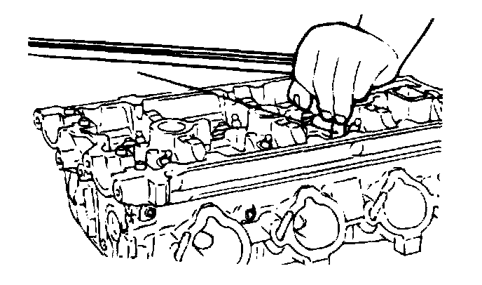 3. Check the cylinder head surface for flatness with a straight edge and feeler gauge as shown in the illustration.