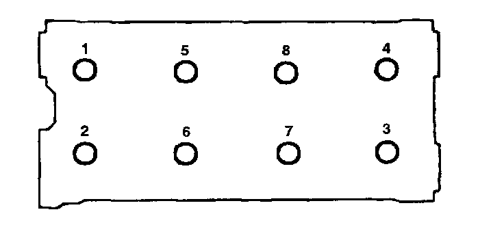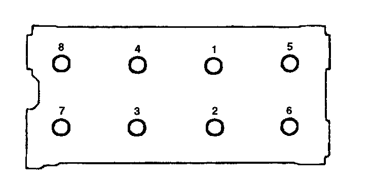 10. Tighten the cylinder head bolts. Starting at top center, tighten all cylinder head bolts in sequence as shown in the illustration, using the 12 mm socket.
