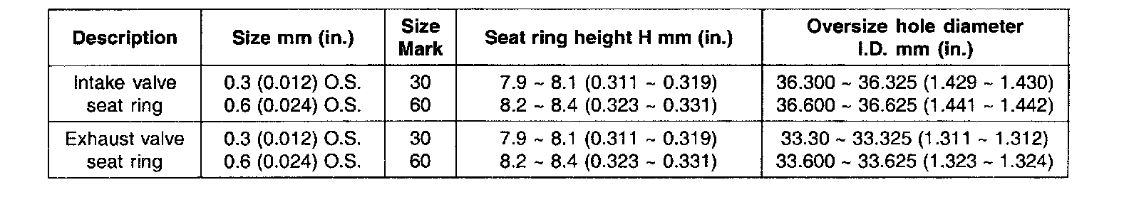 VALVE SEAT RING OVERSIZES