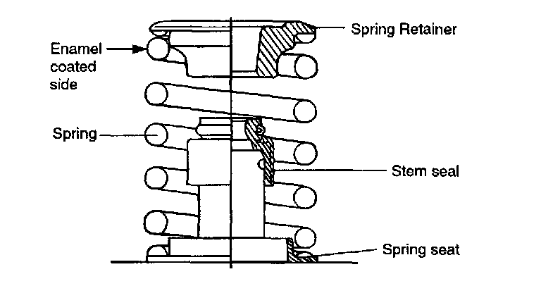 4. Place valve springs so that the side coated with enamel faces toward the valve spring retainer.