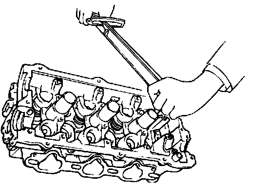 NOTE: When the spring is compressed, check that the valve stem seal is not pressed against the bottom of the retainer.