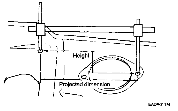 1. These are the dimensions measured when the measurement points are projected from the vehicle's surface, and are the reference dimensions used for body alterations.