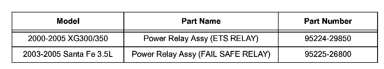 ^ Malfunction of the ETS Relay (XC), Fail Safe Relay (Santa Fe)