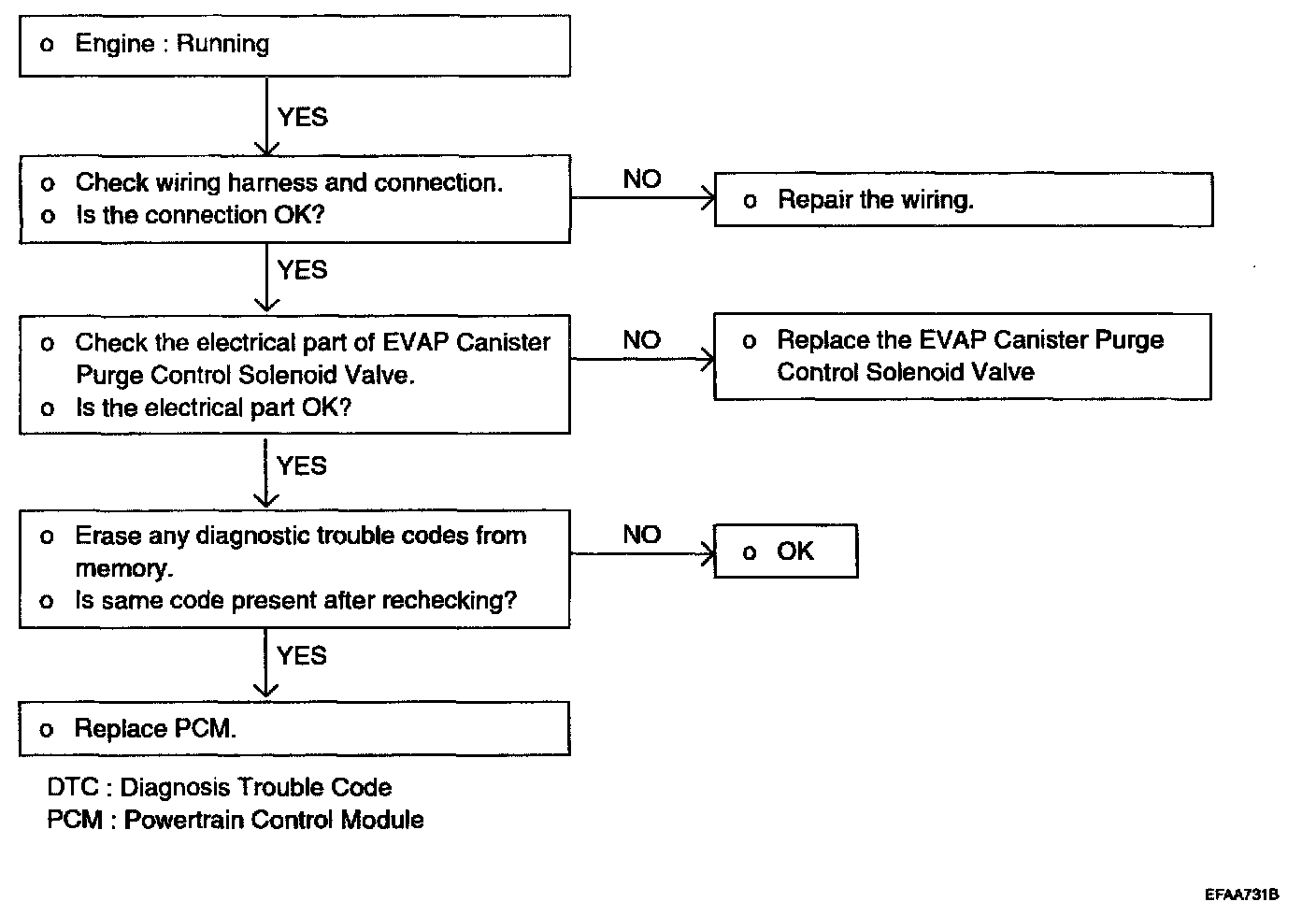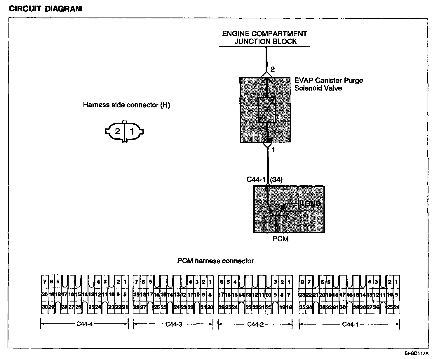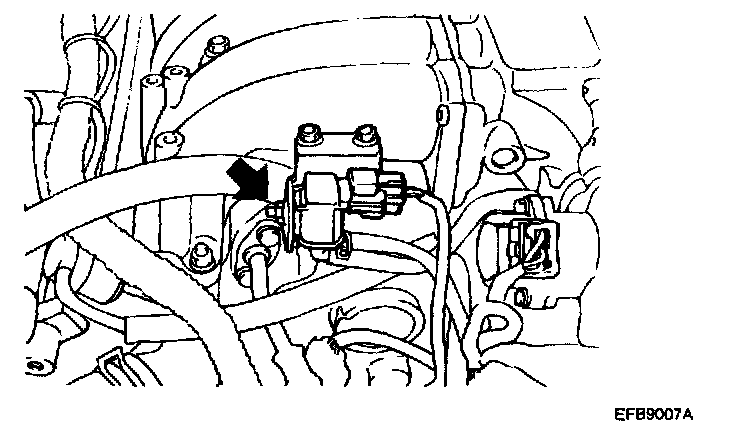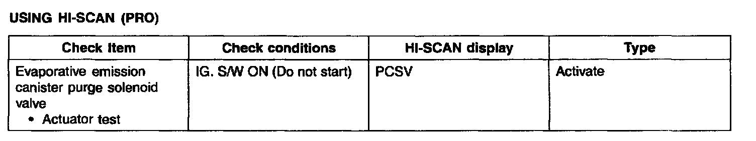 The evaporative emission canister purge control solenoid valve is a duty control type, which controls purge air from the evaporative emission canister.