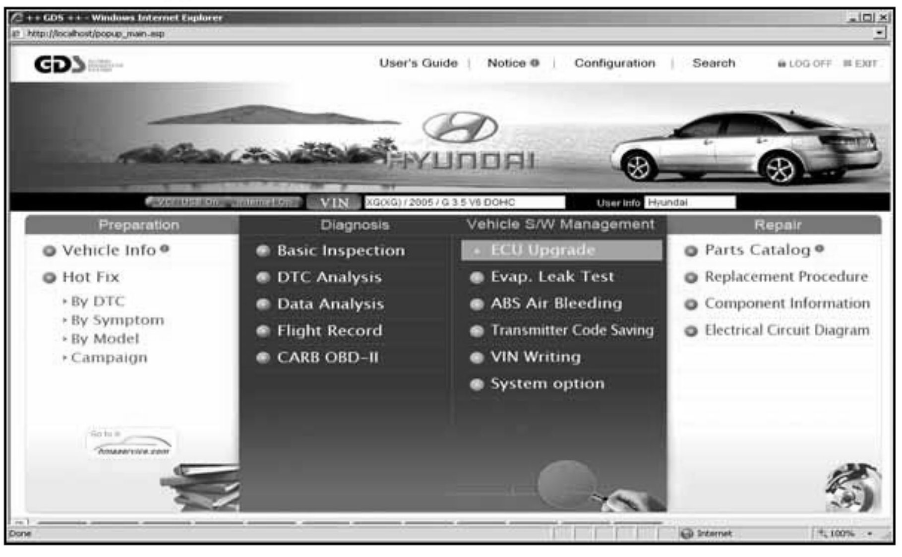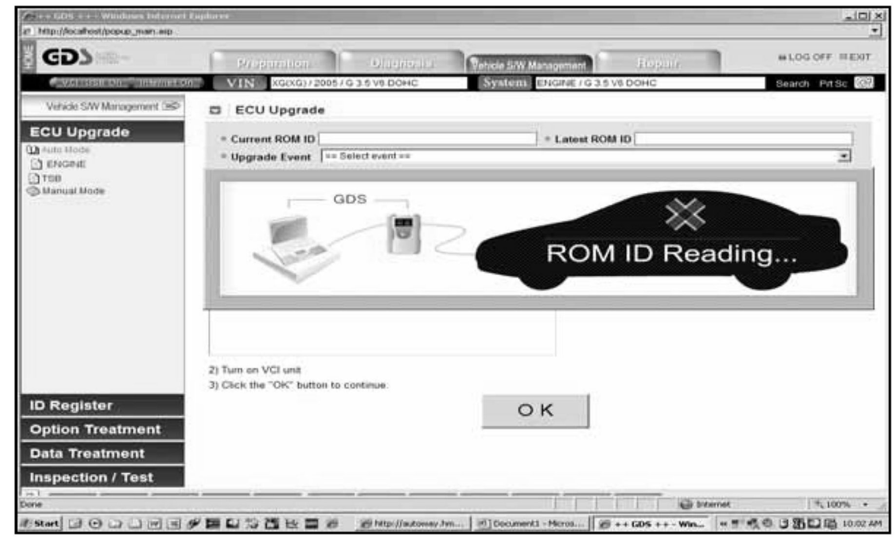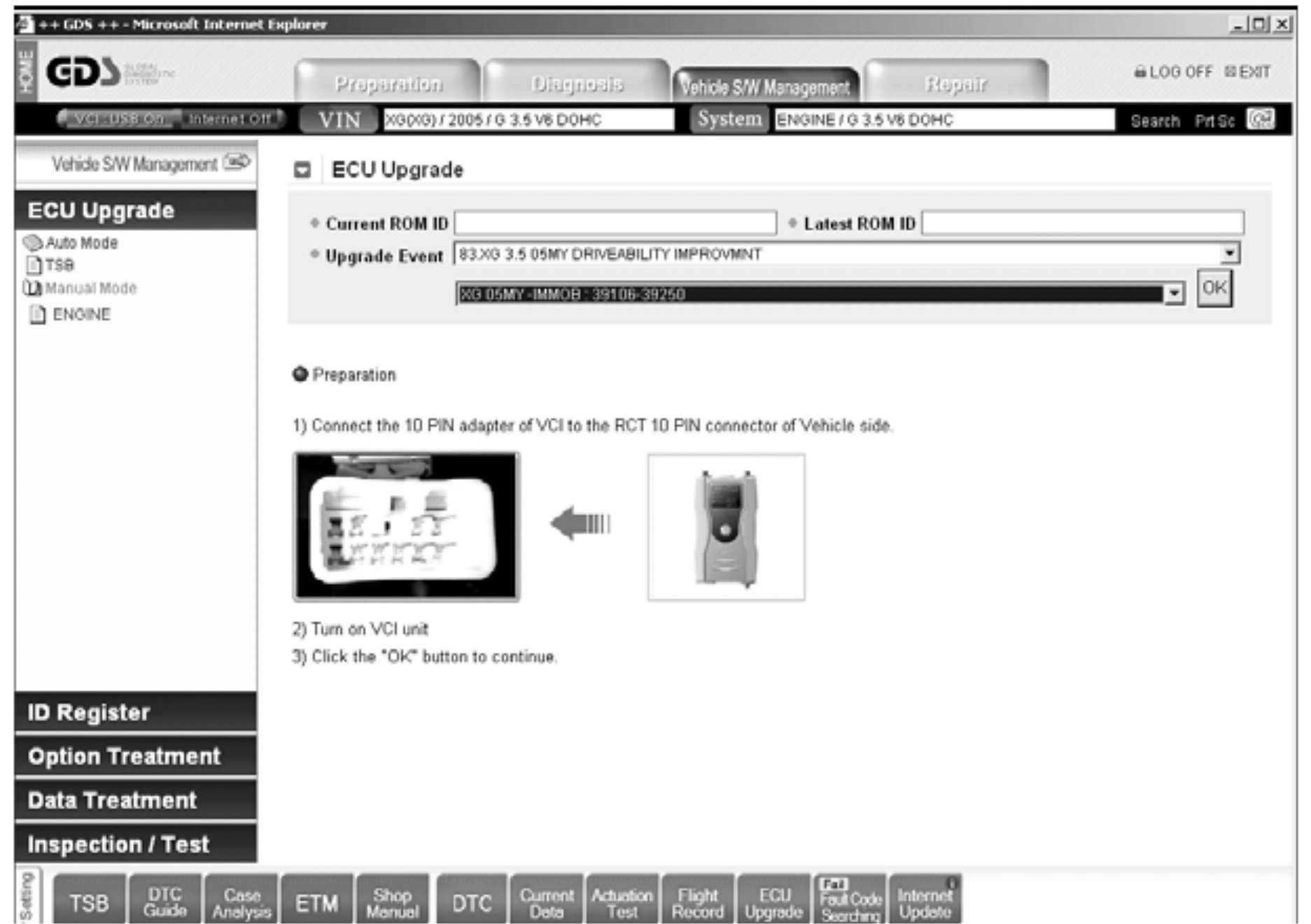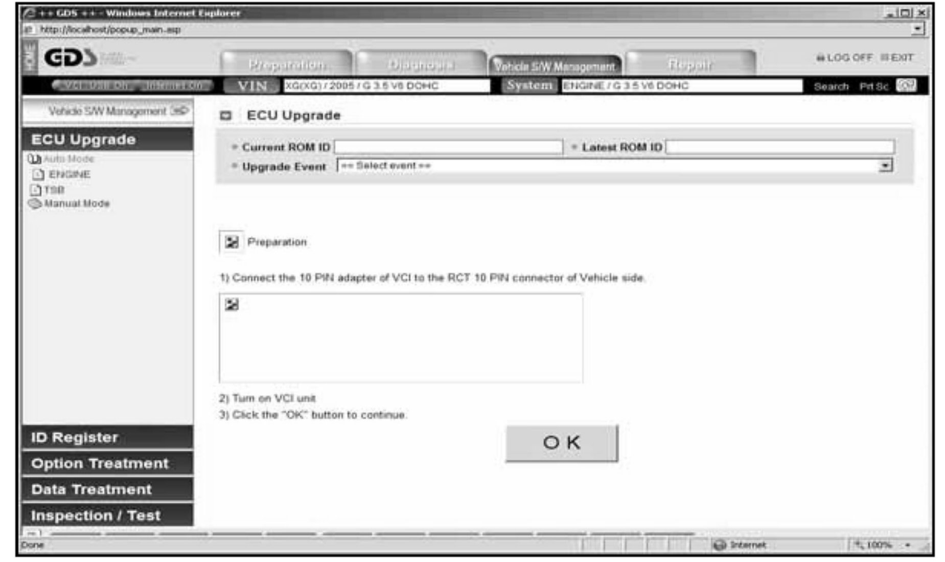 4. Turn on the VCI and GDS laptop, and then perform reprogramming in accordance with the instructions below: