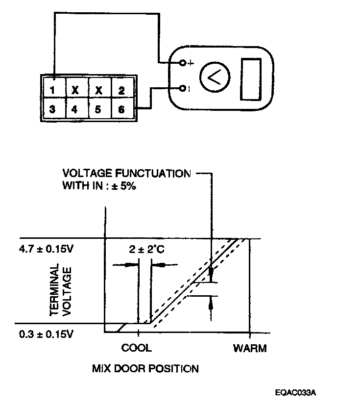 2. Inspect that voltage changes up to air mixing door position pushing temperature switch up and down.