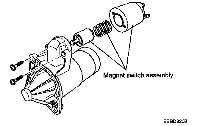 2. After loosening the 2 screws, detach the magnet switch assembly.
