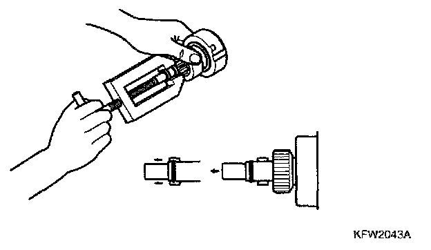 NOTE: Using a suitable pulling tool, pull the overrunning clutch stop ring over the stopper