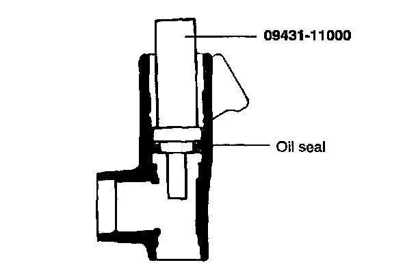 5. Set the scribed side of the oil seal (inner) in the special tool (09431-11000) and install in the gear housing.