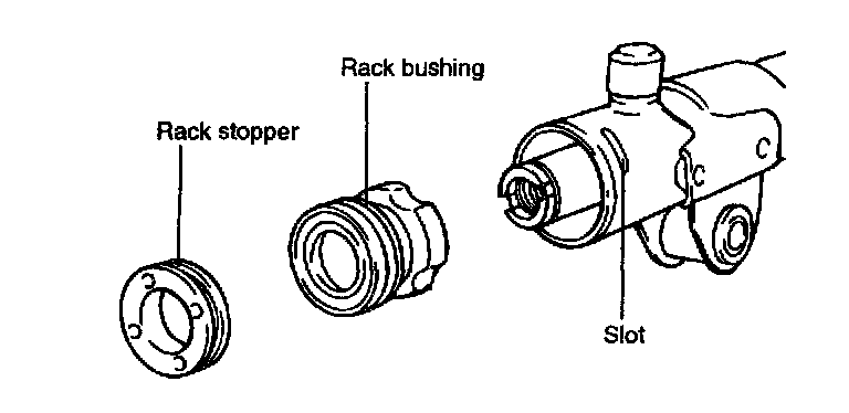 10. Insert the rack into the gear housing. Install the rack bushing and rack stopper.