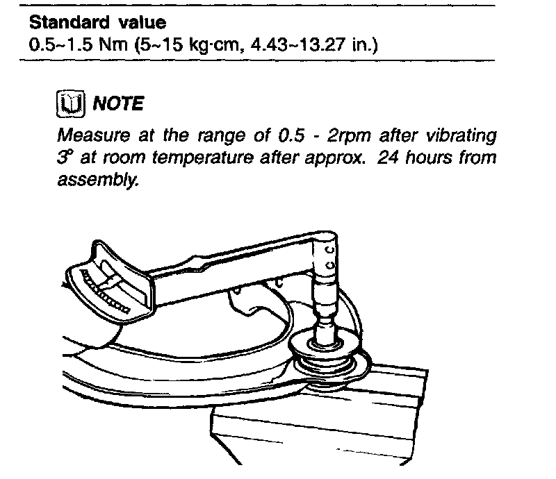 NOTE: Measure at the range of 0.5 - 2 rpm after vibrating 3° at room temperature after approx. 24 hours from assembly.