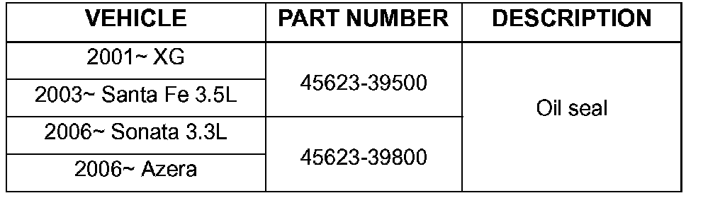 2001-05 XG, 2003-SANTA FE 3.5L, 2006-SONATA 3.3L, 2006-AZERA