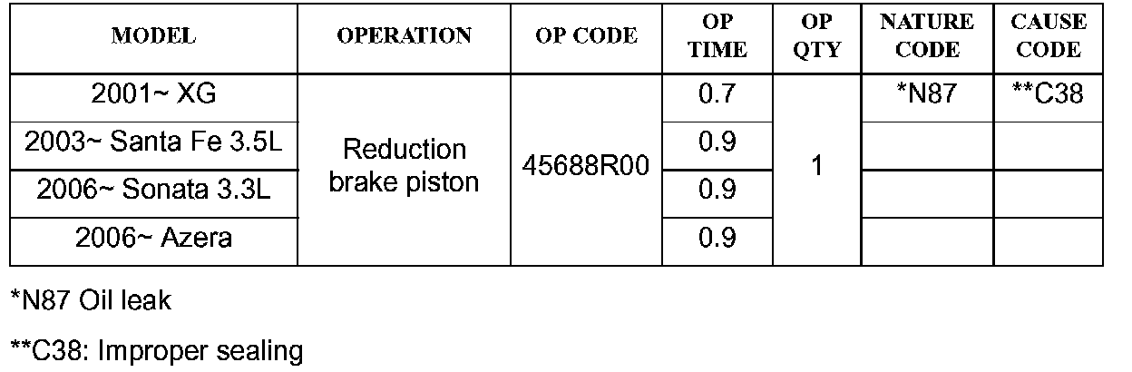 Do not replace a 5-speed automatic transaxle because of an oil leak at the reduction brake piston cover. Replace the piston cover oil seal as instructed in this TSB.