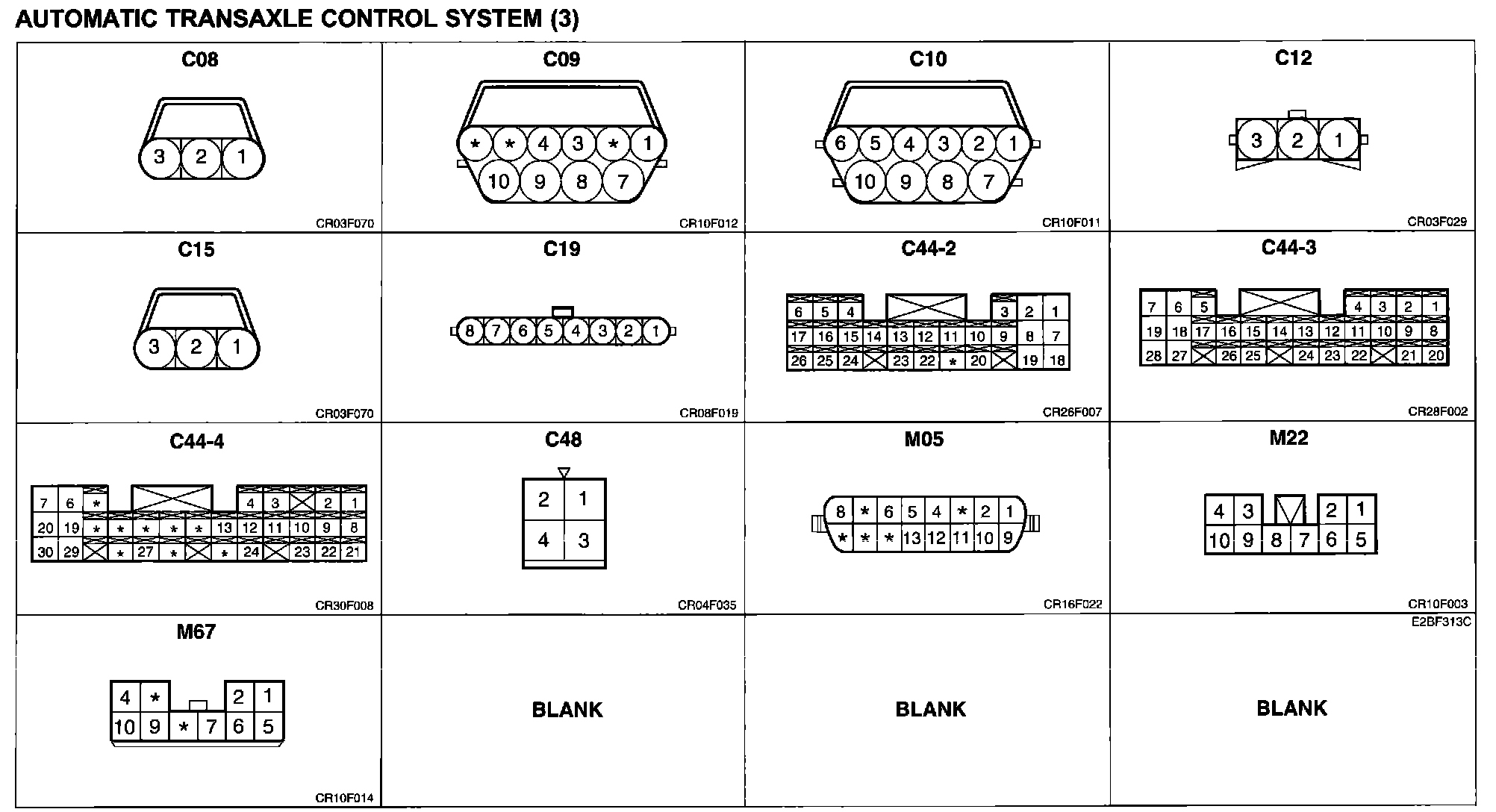 Automatic Transaxle Control System (3) Connector Pin Outs: