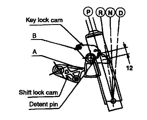 ^ Check that the shift lock cam is located at "A".