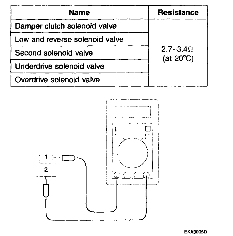 3. Measure the resistance between terminals 1 and 2 of each solenoid valve.