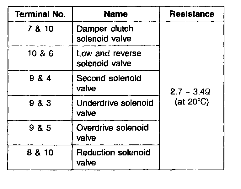 NOTE: Resistance of the solenoid valve connector.