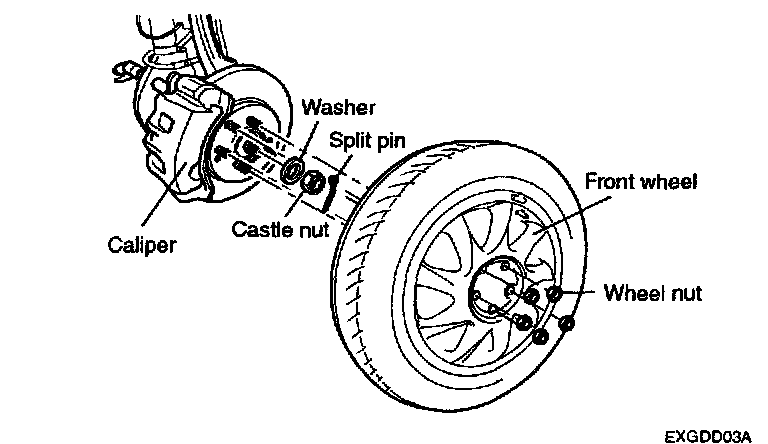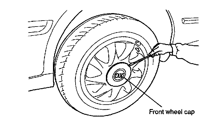 2. Remove the front wheel and tire after loosening 5 wheel nuts.