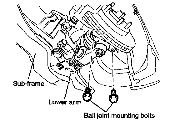 6. Remove the 2 bolts and disconnect the ball joint from the knuckle.