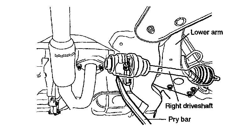 10. Insert a pry bar between the center bearing bracket and the driveshaft, and then pry the driveshaft.