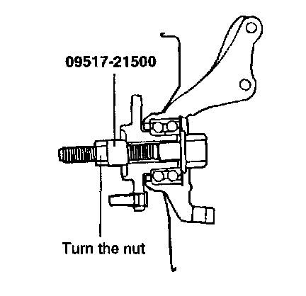 ^ Do not allow the vehicle weight to be concentrated on the wheel bearing. Hold the wheel bearing with the special tool (09517-21500) because it could be damaged when moving the vehicle with the driveshaft removed.