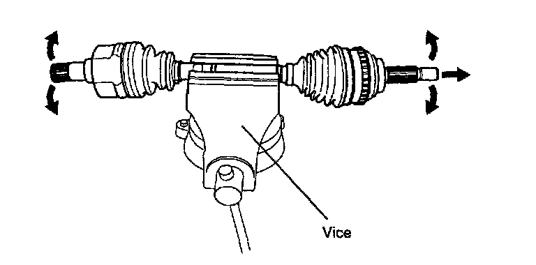 ^ If you pull the driveshaft by excessive force, components inside the joint can be displaced causing the boot to be torn and the bearing to be damaged.