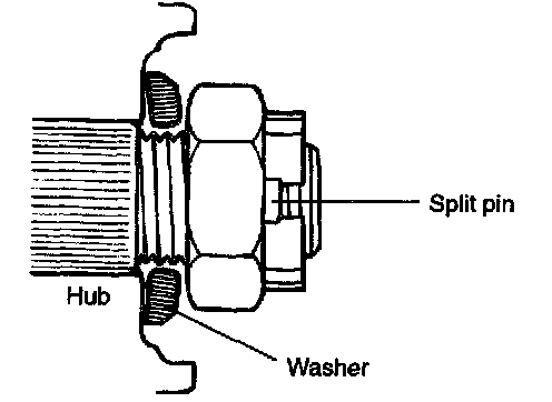 6. Position the washer with the convex facing out (both sides) and install the castle nut and split pin.
