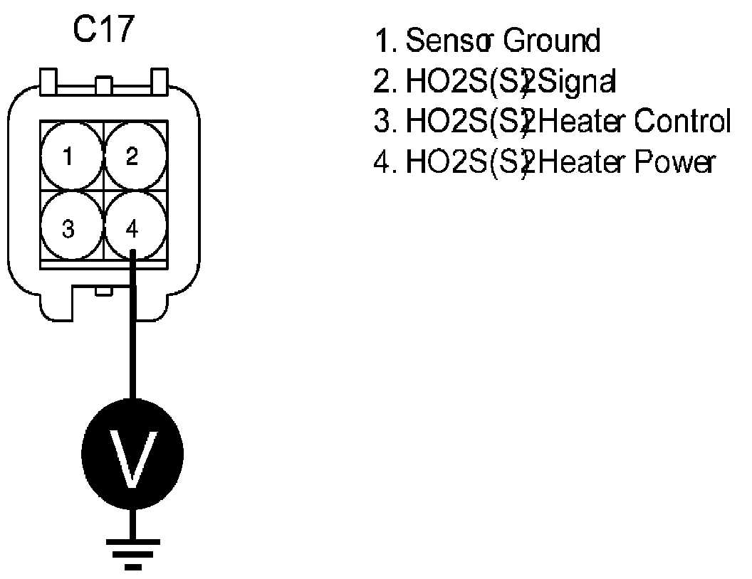 4. Measure voltage between terminal 4 of HO2S(S2) harness connector and chassis ground.