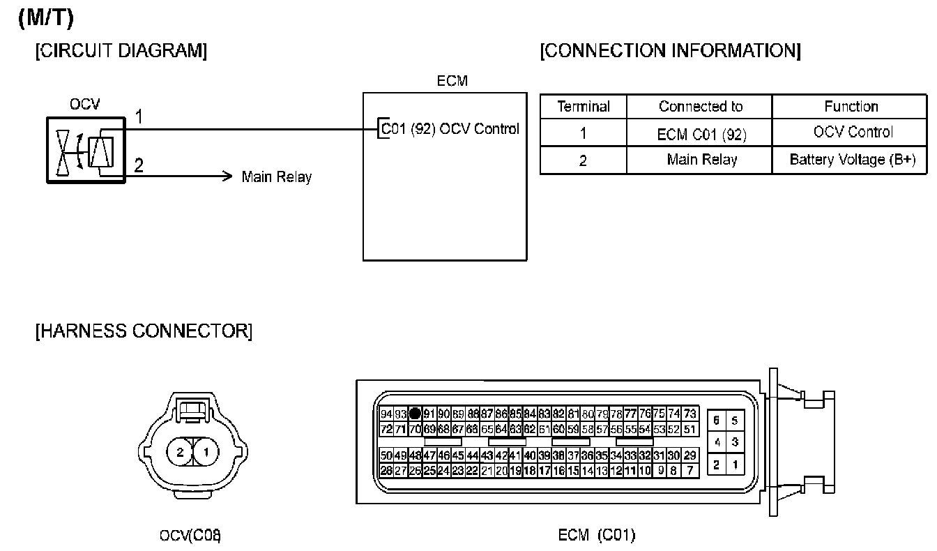 When ECM/PCM detects short to power in OCV control circuit, ECM/PCM sets DTC P0077.