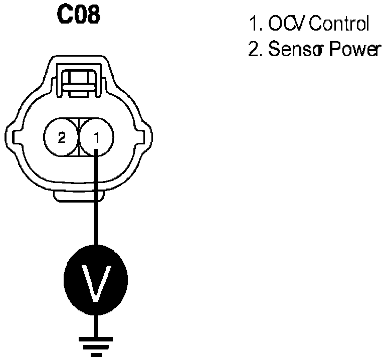 d. Measure voltage between terminal 1 of OCV harness connector and chassis ground.