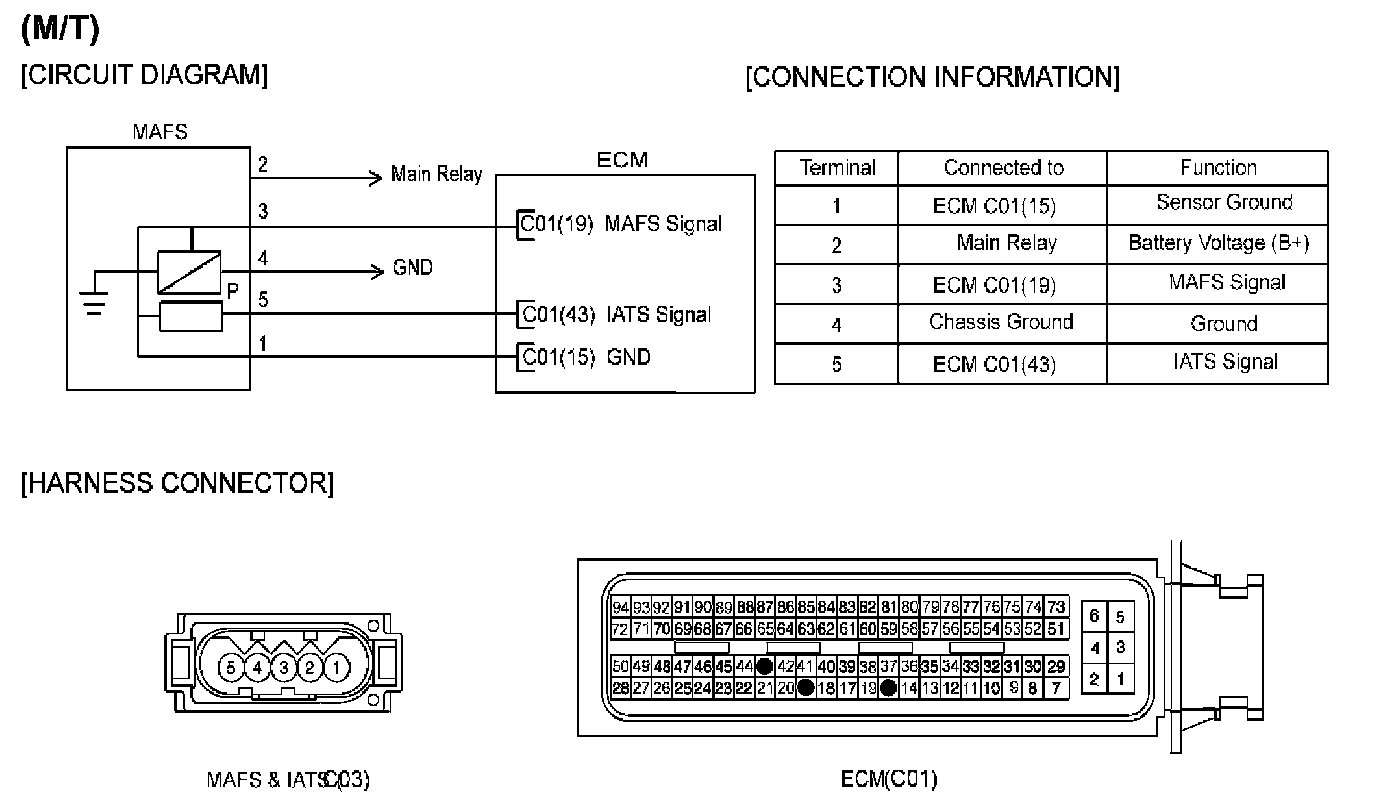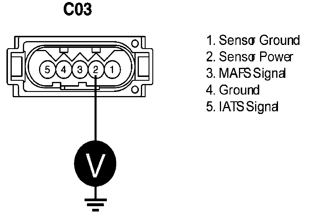 4. Measure voltage between terminal 2 of MAFS harness connector and chassis ground.