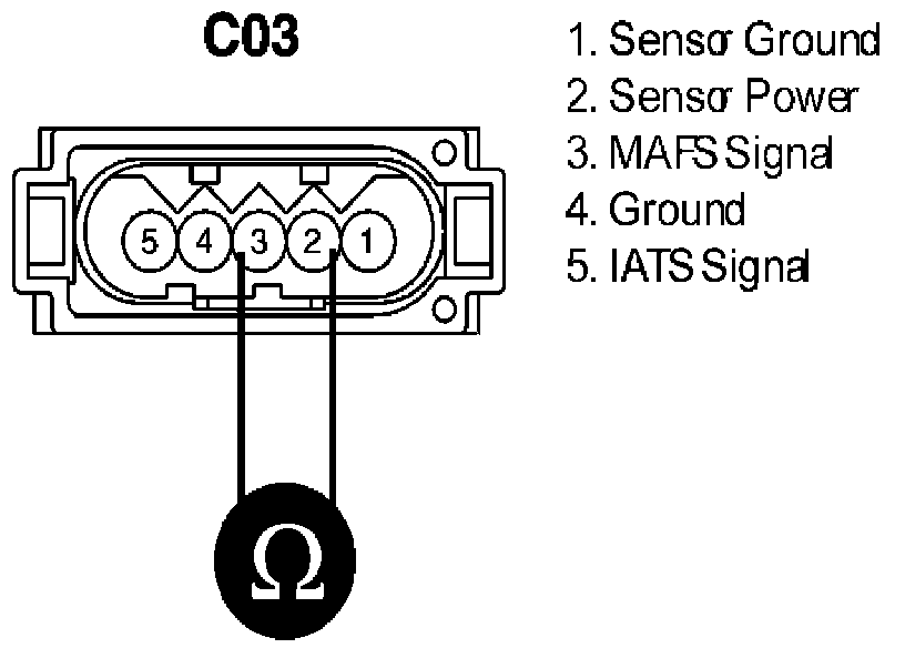 c. Measure resistance between terminal 2 and 3 of MAFS harness connector.