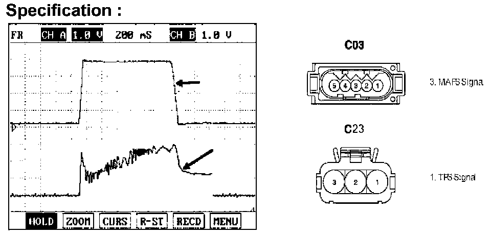 b. Connect CHA probe to terminal 3 of MAFS and CHB probe to terminal 1 of TPS connector.