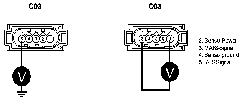 4. Measure voltage between terminal 5 of IATS harness connector and chassis ground.