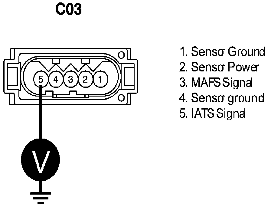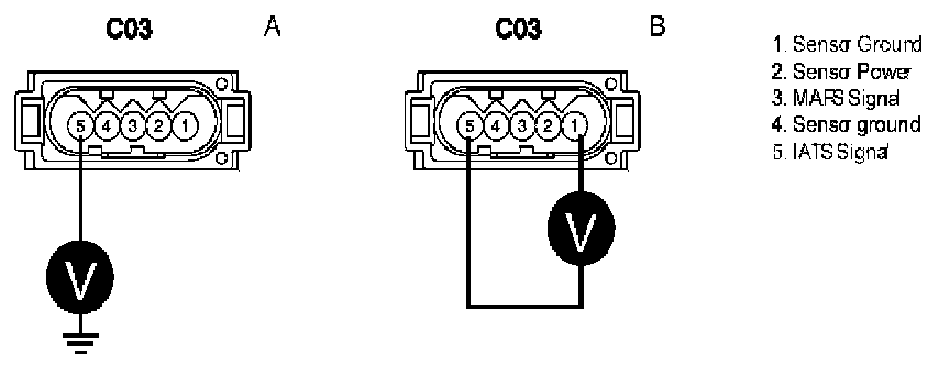 d. Measure voltage between terminal 5 of IATS harness connector and chassis ground.