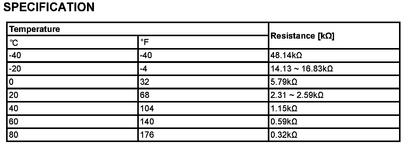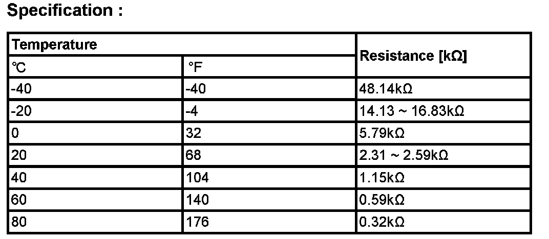 If measured temperature is lower than the minimum threshold value, ECM/PCM sets DTC P0118.(In this case, the input signal voltage is the maximum threshold value.)