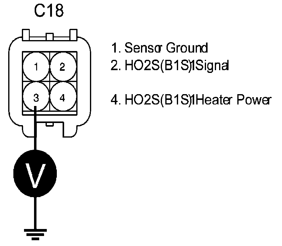 4. Measure voltage between terminal 4 of HO2S (B1S1) harness connector and chassis ground.