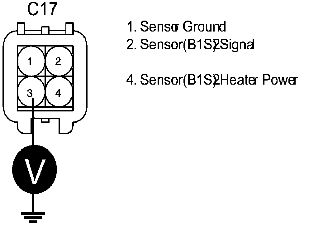 4. Measure voltage between terminal 3 of HO2S(B1S2) harness connector and chassis ground.