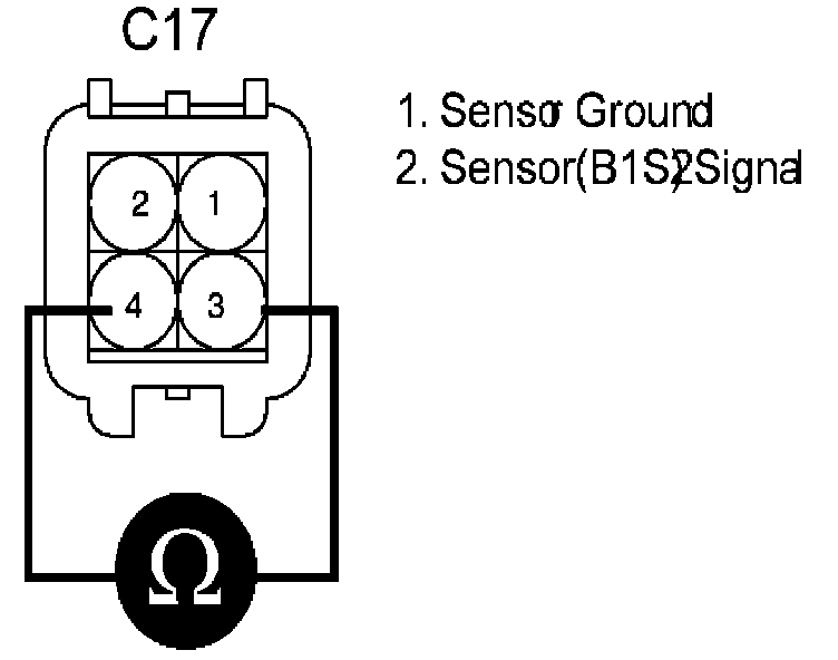 c. Measure resistance between terminal 3 and 4 of HO2S(B1S2) connector.(Component Side)